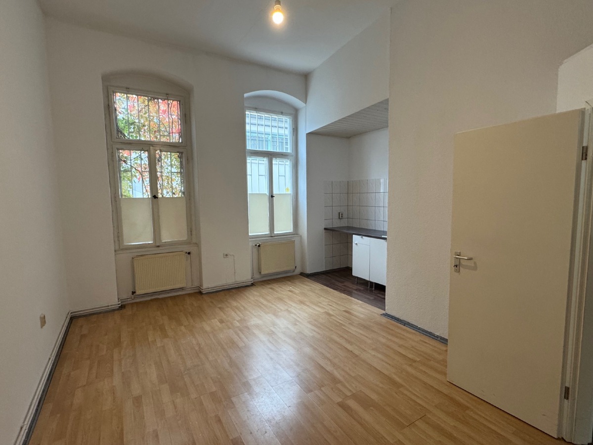 Der hintere Raum mit offener Teeküche bietet dank seiner großzügigen Fläche vielseitige Nutzungsmöglichkeiten – ob als zusätzliches Büro, Besprechungs- oder Aufenthaltsraum, ganz nach Ihren individuellen Bedürfnissen.