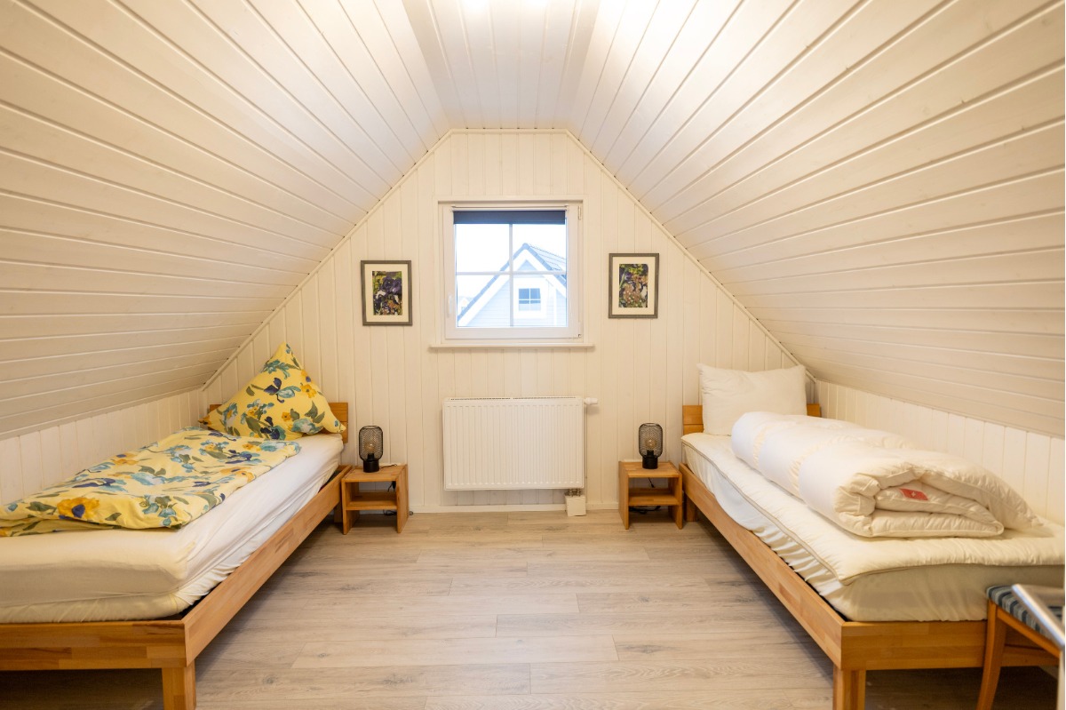 Eine besondere architektonische Raffinesse stellt die zusätzliche obere Etage dar. Hier erwarten Sie ein weiteres Schlafzimmer sowie eine charmante Galerie mit Blick in den Wohn-Essbereich, die dem Haus ein offenes, lichtdurchflutetes Raumgefühl verleiht.