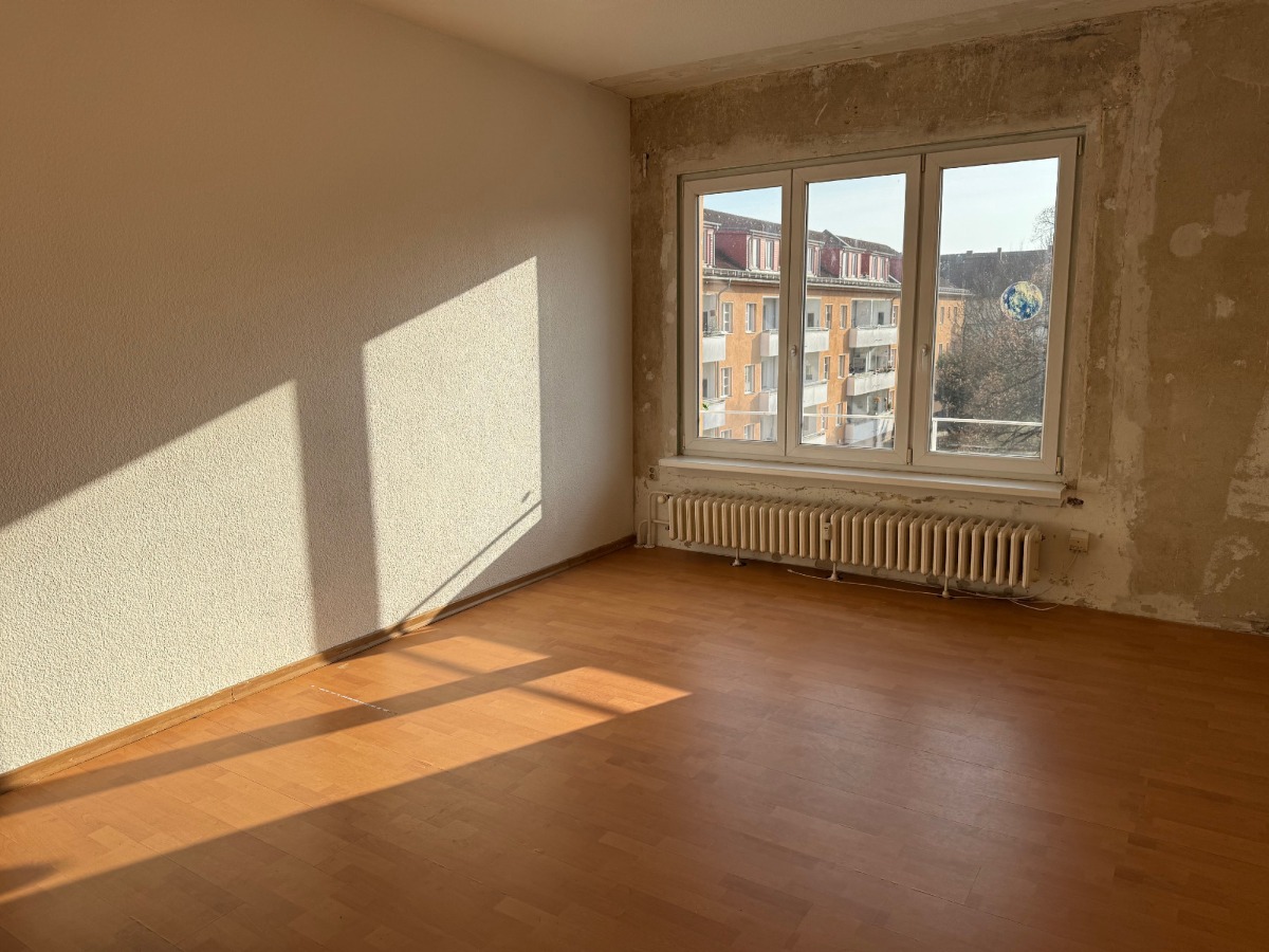 Die Wohnung eignet sich vor allem für Käufer, die bereit sind, eine grundlegende Sanierung durchzuführen und die Räumlichkeiten nach eigenen Vorstellungen neu zu gestalten.
